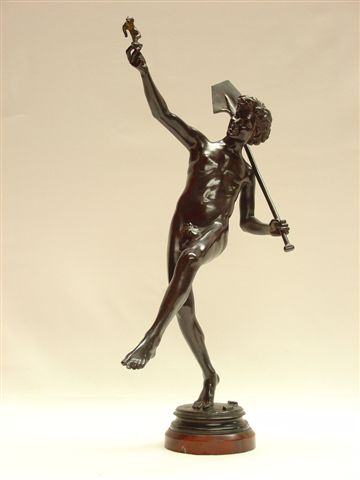 "Une trouvaille à Pompéï". Bronze à patine brune. Signé sur le socle "Moulins". Cachet "Thiebaut frères fondeurs, Paris". Socle marbre rouge. Haut. 49 cm.