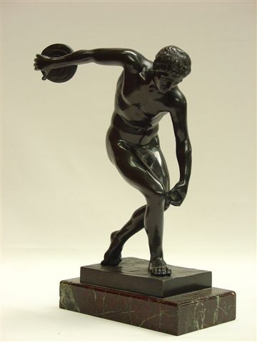"Le Discobole", d'après Miron. Bronze à patine brune. Signé "Myran".
