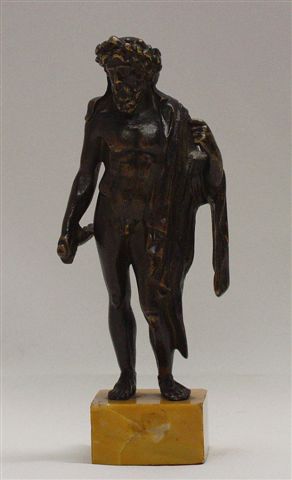 Jupiter et la foudre. Bronze à patine médaille. Socle en marbre jaune. Haut. 19 cm.