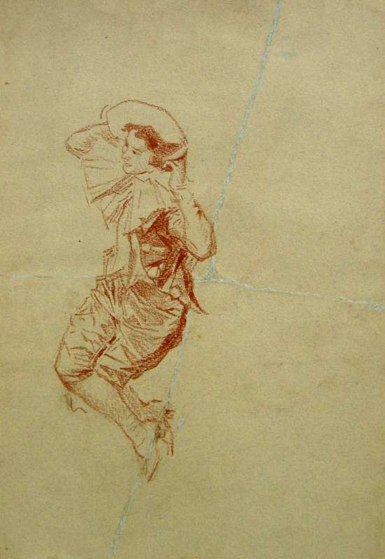 Colombine. Sanguine sur papier bistre. Croquis non signé.