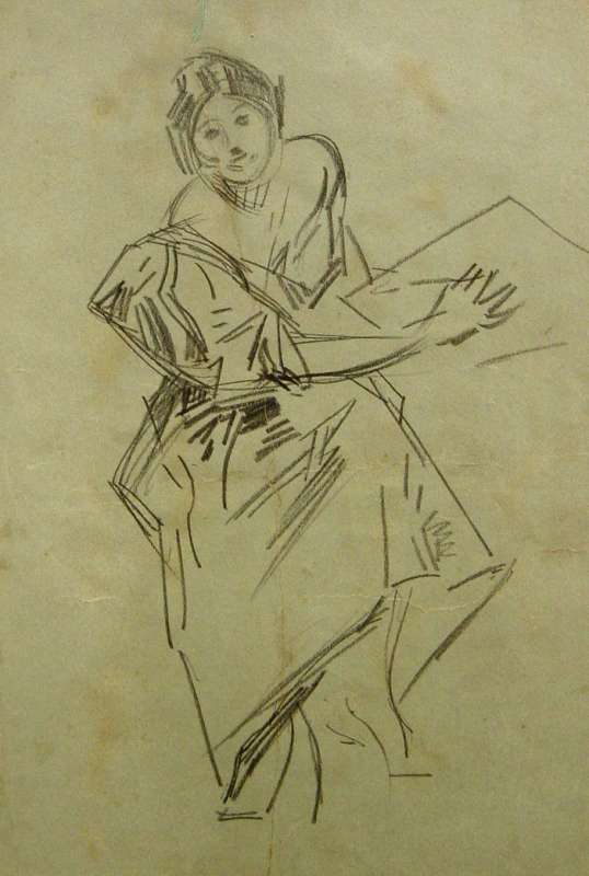 Modèle au carton. Fusain sur papier bleu. Croquis non signé.