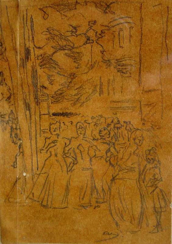 Esquisse au crayon sur papier calque. Monogramme en bas à droite. (accdts). 13,5 x 10 cm.