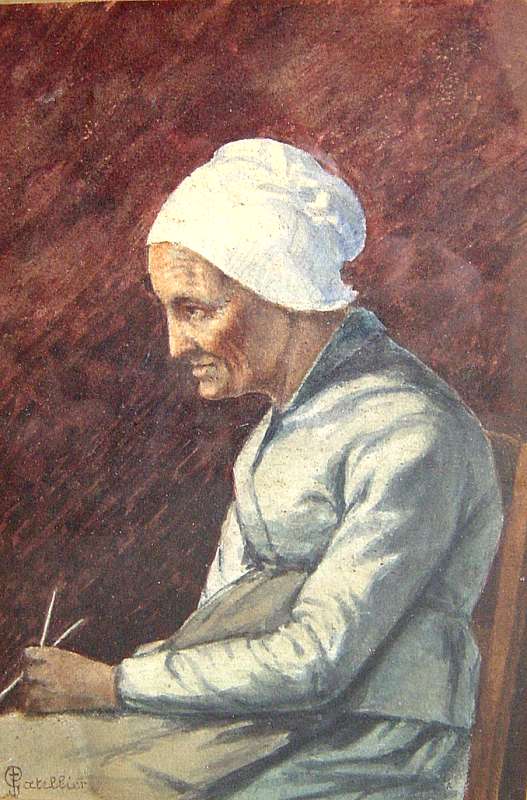 Portrait d'une vieille femme. Aquarelle gouachée, signée en bas à gauche. 21,5 x 15 cm.
