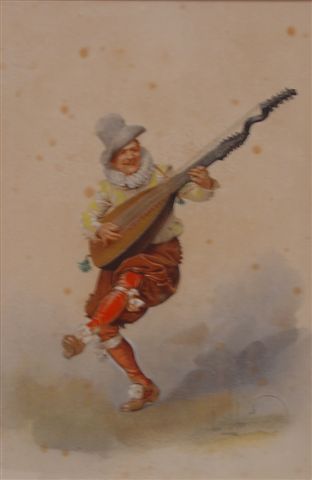 Le joueur de guitare. Aquarelle. Signée et datée en bas à droite Louis Leloir... 22,5 x 15 cm. Mouillures.