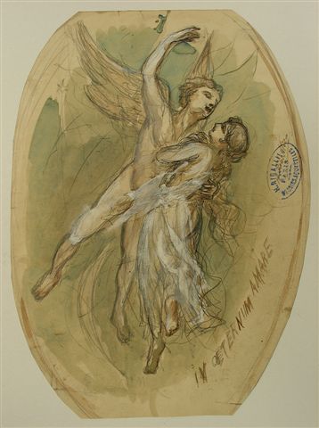 L'amour éternel. Encre, aquarelle et rehauts. Signée en bas au centre et tampon. 22,5 x 30,5 cm.