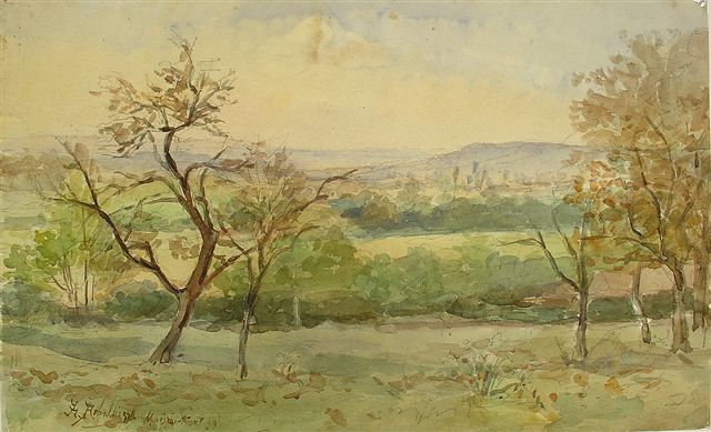 Paysage. Aquarelle. Signée, datée et située en bas à droite.