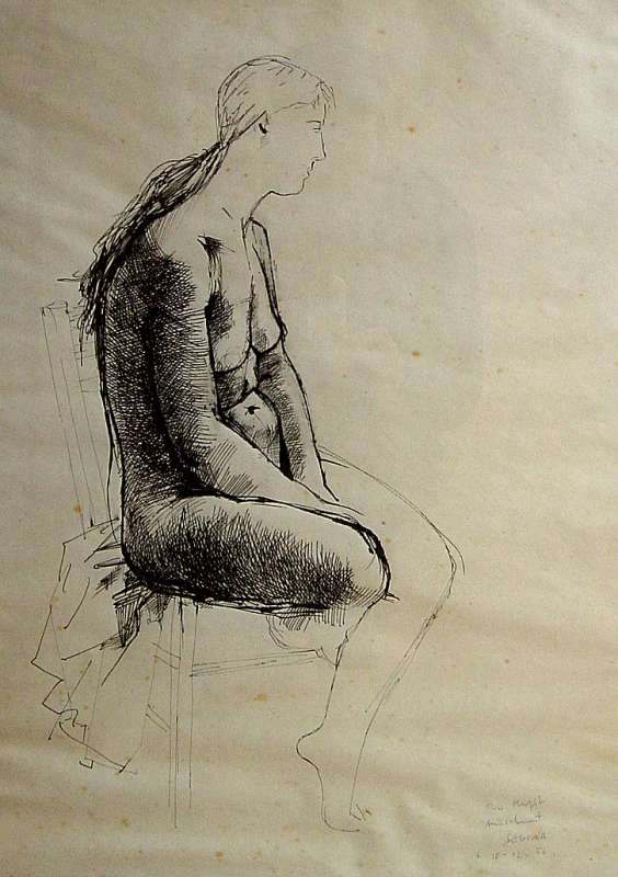 Nu féminin. Encre de Chine sur papier. Porte un envoi "pour Margot, amicalement". Signée en bas à droite et datée 18.12.56.
