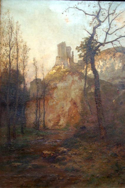 Vue du Château de Lavardin. Huile sur toile, signée en bas à droite et datée 1902. 103 x 76 cm.