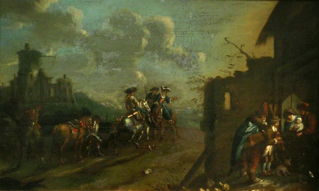 La halte des cavaliers. Panneau, une planche, non parqueté.