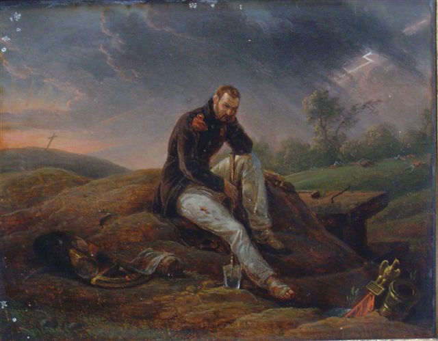 Le soldat blessé. Papier. 11 x 14,5 cm.