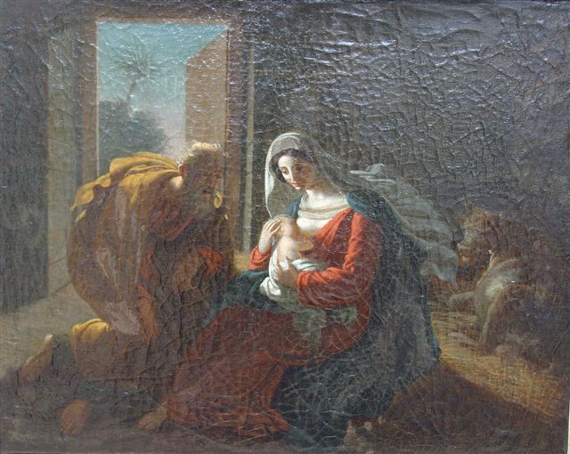 Le sommeil de l'Enfant Jésus. Sur sa toile d'origine. 32,5 x 41,5 cm.
