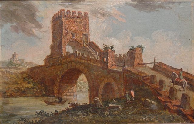 École FRANCAISE vers 1830.Le pont. Toile. 27 x 41 cm.