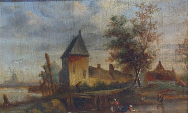 Paysage au moulin. Panneau, une planche, non parqueté.