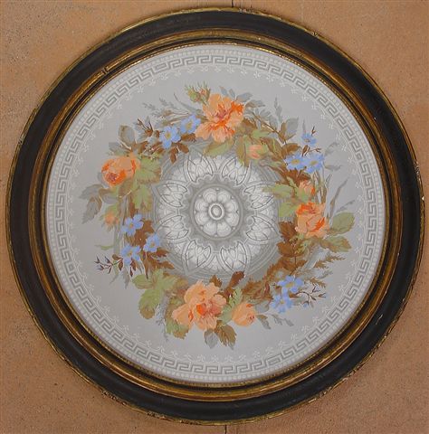 ROSACE FLEURIE, papier peint à la planche, cadre circulaire. Napoléon III.