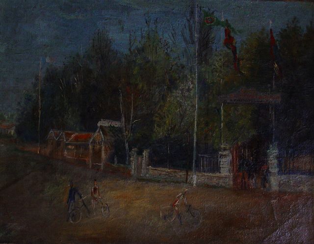 Entrée d'hôtel. Toile. Signée en bas à droite. 50 x 65 cm.