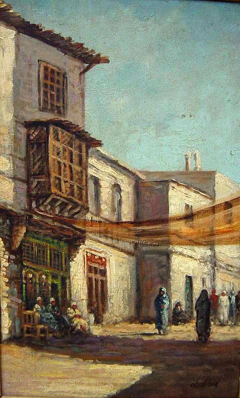 Une rue arabe. Huile sur toile. Signée en bas à droite.