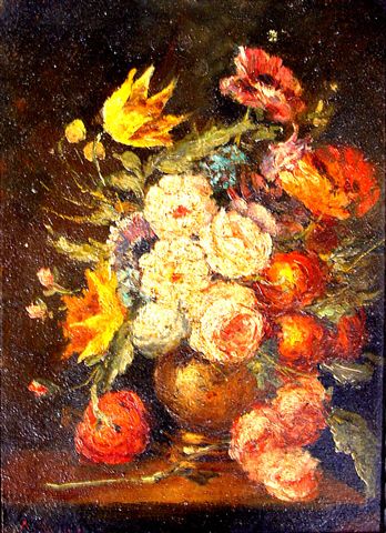 Bouquet de fleurs. Huile sur panneau. Signée en bas à gauche.