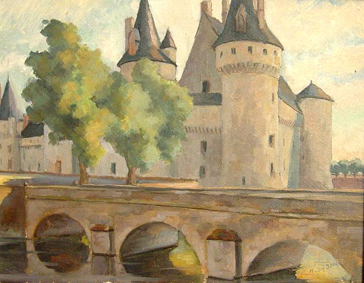 Château de Sully-sur-Loire. Huile sur carton. Signée en bas à droite.