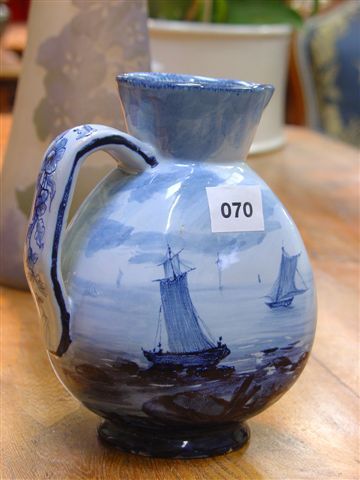 GALLÉ. PICHET en céramique à décor bleu de marine et fleurs sur anse. Signé Gallé Nancy. Haut. 15 cm. (petites égrenures).