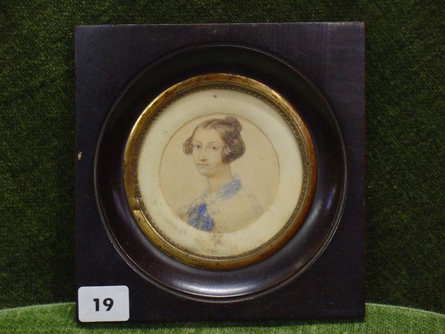MINIATURE. Portait de jeune femme. Dessin aquarellé. Milieu XIXème. Haut....