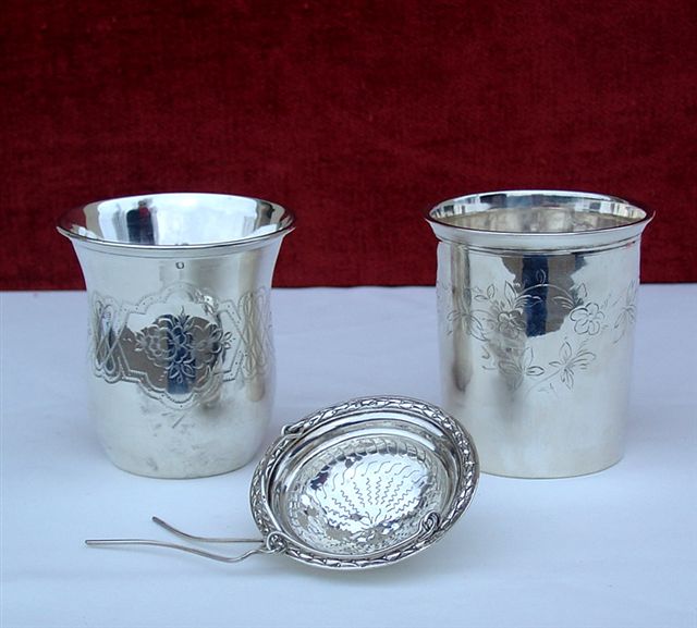 PASSOIRE à THÉ en argent à décor de tores de laurier. Poinçon Minerve. Poids: 40 g.