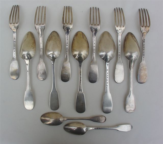 LOT de COUVERTS de table en argent, modèles divers. Poinçons au Coq et Minerve. Poids: 975 g.