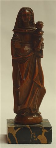 VIERGE A L'ENFANT (manque le bras droit de la Vierge). Bois sculpté. XVIIIème. Haut. 12,5 cm.