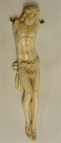 CHRIST en croix (manque les bras). Ivoire. XVIIIème-XIXème siècle. Haut. 18,5 cm.