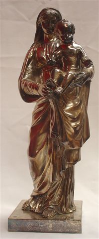 VIERGE à L'ENFANT. Bronze argenté. Haut. 44 cm.