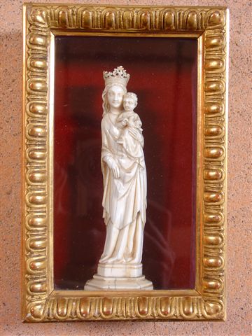 VIERGE À L'ENFANT en ivoire sculpté en ronde bosse. Coffret...