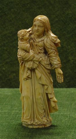 VIERGE à L'ENFANT. Ivoire ou os?. Travail ancien. Haut. 14 cm.