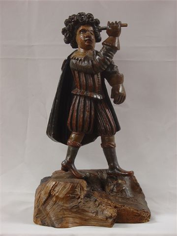 SUJET en bois polychrome représentant Galilée? Travail ancien.