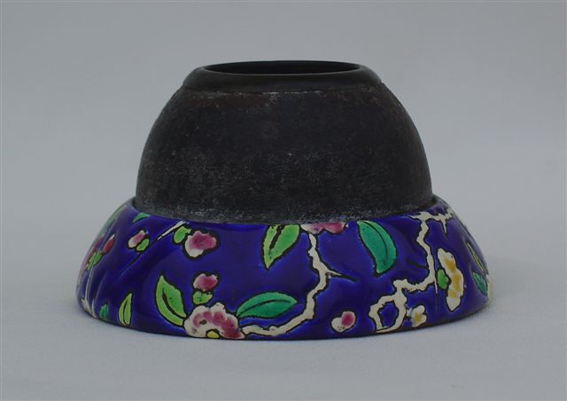 PYROGÈNE. Décor de branches fleuries sur fond bleu foncé. Forme en creux 1885.