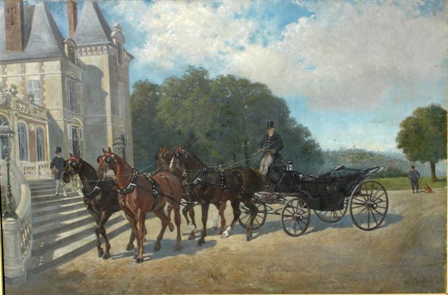 À rapprocher d'une autre oeuvre de l'artiste: "Le Fiacre". Huile sur toile signée en bas à droite. 100 x 150 cm. (vente Christie's New York, 29 octobre 1986).