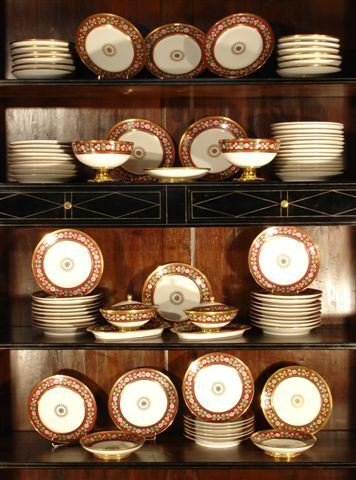 SÈVRES (porcelaine dure).SERVICE de 78 pièces comprenant : 59 assiettes...