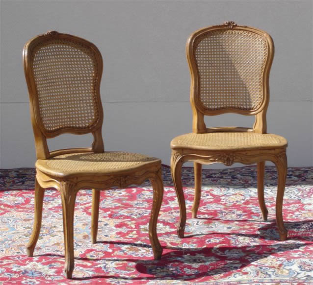 Paire de CHAISES à dossier cabriolet, en hêtre naturel mouluré et sculpté de fleurs, Pieds cambrés.