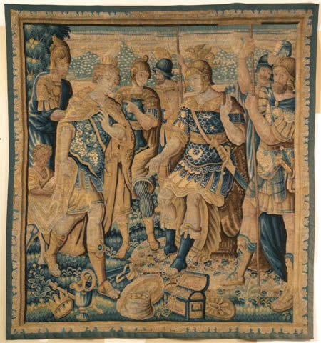 TAPISSERIE d'AUDENARDE.Le paiement du tribu. Laine et soie.Fin XVIème -...