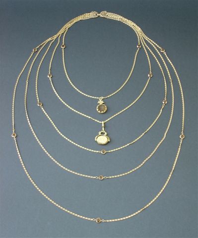 SAUTOIR à 5 chaînes retenues par un fermoir ouvragé, avec...