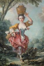Dating from 1769, La Petite Laitière has enjoyed a splendid posterity in numerous engravings as well as tapestries produced by the Gobelins manufactory from 1773 onwards. In an article of July 1777, Le Mercure de France reported that the entrepreneur and concierge of the Paris manufactory, Pierre-François Cozette, presented Louis XVI and Marie-Antoinette with two woven works, one showing Boucher’s La Petite Laitière, the other Le Petit Boudeur (The Sulky Boy) by Jean-Baptise Greuze. These charming and highly popular works encapsulated the spirit of the age to perfection, mingling the Rococo style with a moral touch. Here, we recognize in this damsel in a short, light kirtle the Perrette of La Fontaine's famous fable, published in 1678, who was thinking so much about the money she would make with her milk that she tripped and broke her jug. But "What soul does not daydream? Who does not build castles in the sky?"... So we feel for the painter's dreamy, spirited young girl with her jug perched on her head, seemingly oblivious of the stones piled up in the foreground.In the last century, this thoroughly appealing composition charmed the Franco-Swiss sculptor Isabelle Marghareta Farner Waldberg (1911-1990), a close friend of Alberto Giacometti and the wife of critic Patrick Waldberg. Awarded the Bourdelle Prize in 1961, she became a professor at the École des Beaux-Arts in Paris in 1975. In 1951, she sold the painting—with the help of art historian Robert Lebel, who provided it with a certificate of authenticity—to a collector in the Jura, France, for 3 M francs. It has passed down through the latter's family in the Touraine region until now. We eagerly await the next episode in the saga.