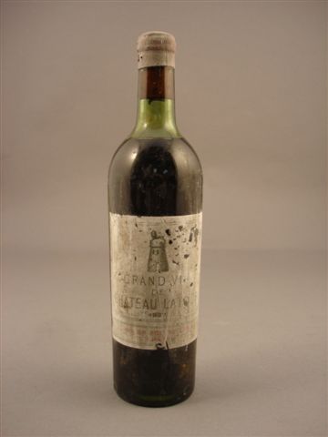 Grand Vin de CHÂTEAU LATOUR, 1er Grand Cru Classé Pauillac, 1937. 1 bouteille (moyennement basse, étiquette sale et déchirée).