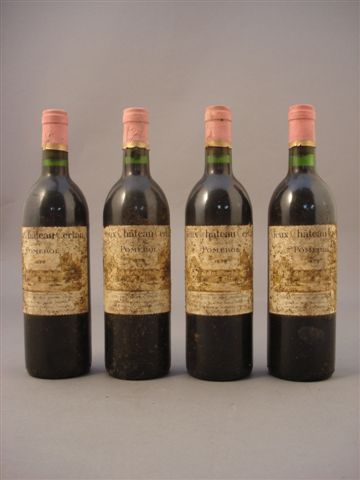 VIEUX CHÂTEAU CERTAN. POMEROL, 1979. 4 bouteilles (2 légèrement basses). Étiquettes sales.