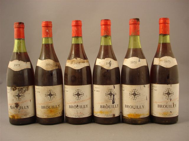 BROUILLY, 1975. 18 bouteilles (1 très légèrement basse, 4 moyennement basses). Étiquettes légèrement sales.