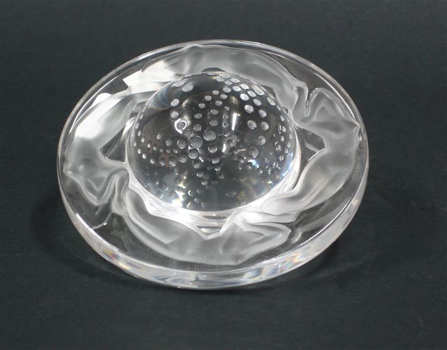 PRESSE-PAPIERS "UNIVERS" en cristal moulé. Signé à la molette.