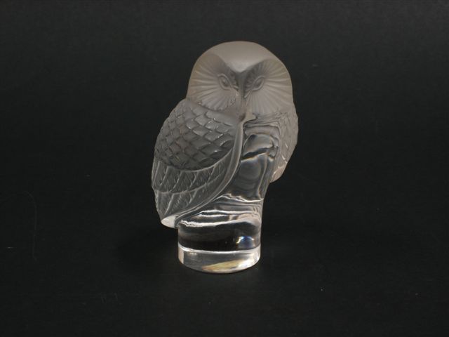 Hibou. CACHET en cristal moulé dépoli. Signé à la molette.