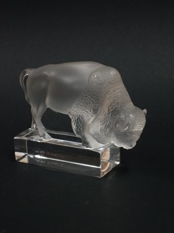 PRESSE-PAPIERS "BISON" en cristal moulé. Signé à la molette.
