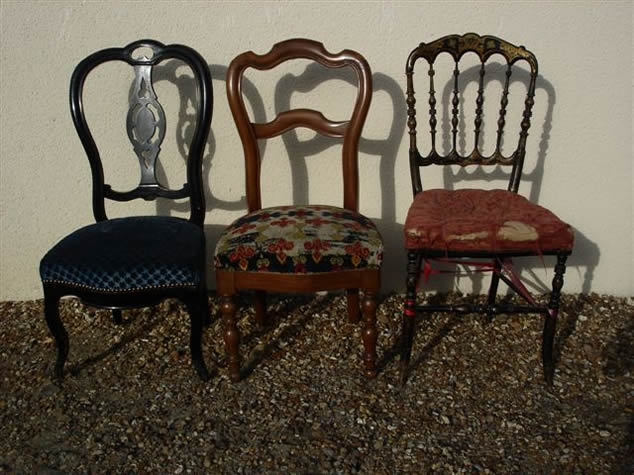 La 1ère en bois noirci rehaussée de motifs stylisés floraux et végétaux or, dossier et pieds à barrettes de bois tourné. Napoléon III. (accdts).