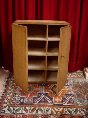 ARMOIRE à pharmacie en chêne et placage de chêne, à deux vantaux découvrant 8 cases.