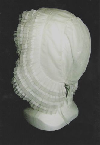 Coiffe à QUATRE RANGS de littre tuyautée sur tulle. Ardèche.