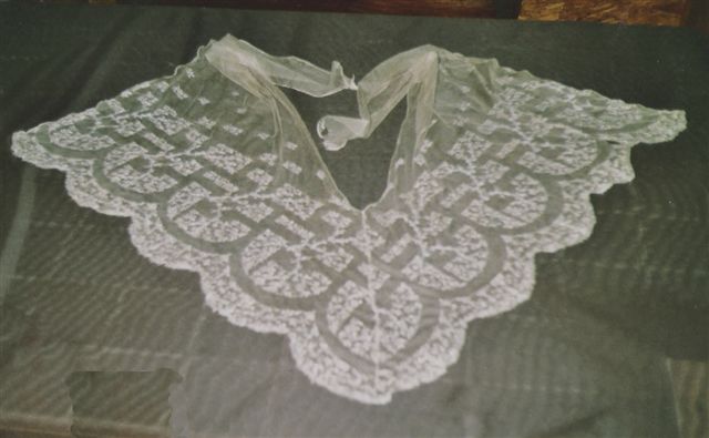 CHÂLE à la "Marie-Antoinette", en tulle brodé.