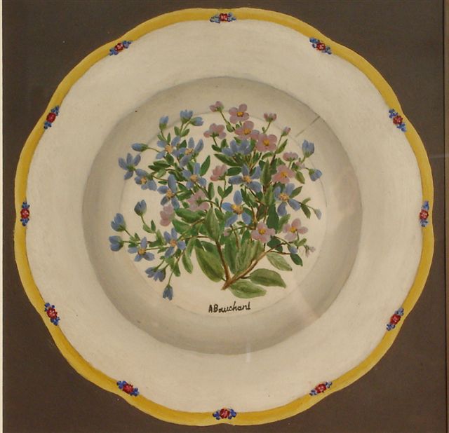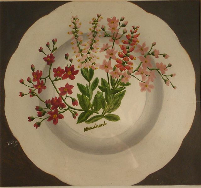 Le thème floral largement représenté dans l'oeuvre de Bauchant a inspiré l'artiste pour cet ensemble - unique - de 3 pièces d'un projet de service en porcelaine de Limoges : fond d'assiettes au motif de fleurs délicates. (division possible)